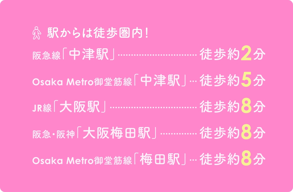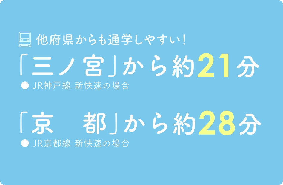 梅田駅、大阪駅、中津駅とどの駅からも近く通いやすいです。放課後に遊びに行ける場所もたくさんあるので学生生活がとても充実しています。