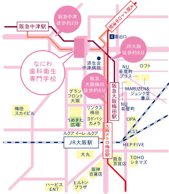 キャンパスが大阪駅、梅田駅のすぐ近くなので、