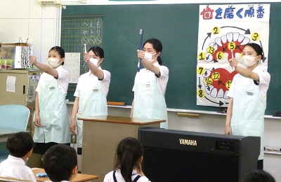 健康な歯を保つための正しい歯の磨き方などを保育園や幼稚園・小学校・老人ホーム・地域の保健センターなどへ出かけて指導し、また必要な栄養・食事などの摂り方も指導します。