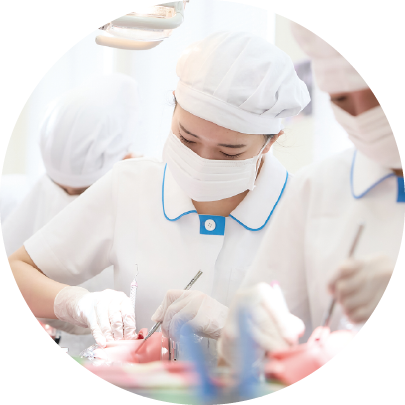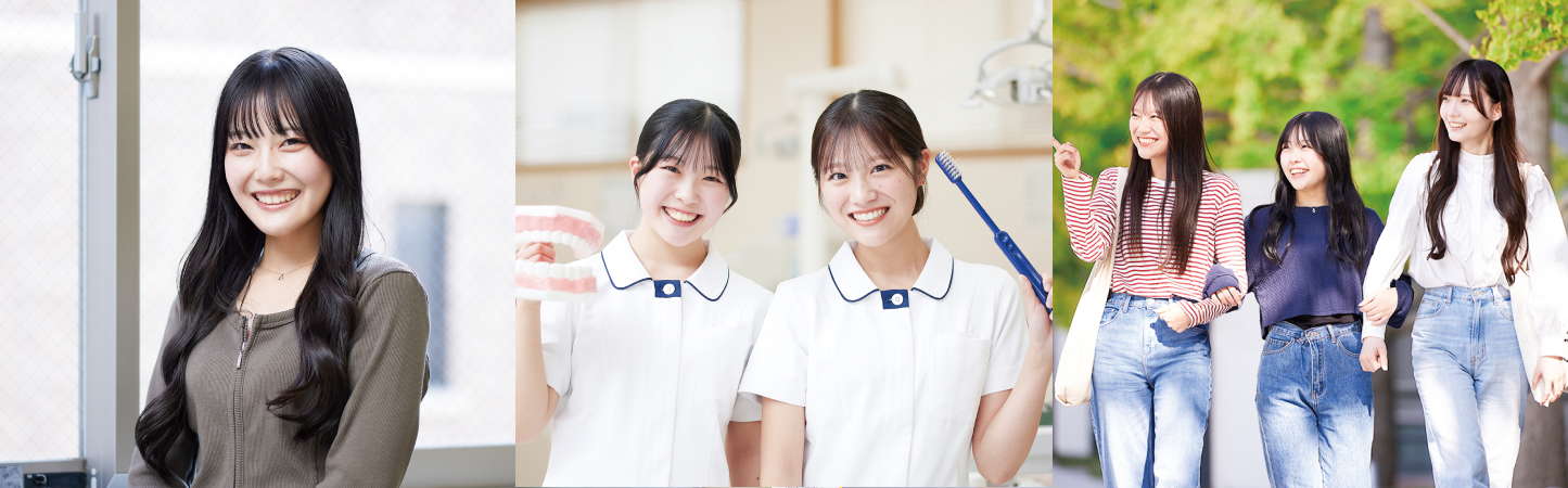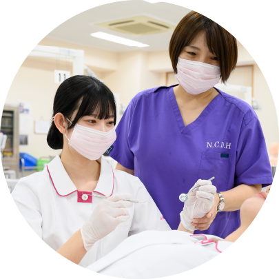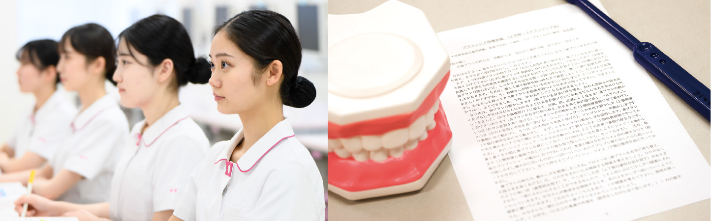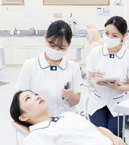 活躍の場をより広げるために、歯科衛生士試験と併せてダブルライセンス制度を実施。介護職員初任者研修・歯科医療事務資格の取得をアシストすることで、身体介護、歯科医療事務、介助の現場へ踏み出す実践力を身に付けることができます。※昼間部のみ